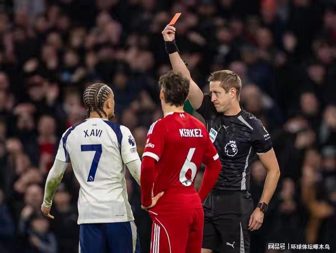 比赛伊始,双方在中场展开激烈缠斗,节奏紧凑但破门机会寥寥。然而,比赛的平衡在第30分钟被彻底打破。热刺中场哈维·西蒙斯在一次拼抢中,亮出鞋钉直接蹬踏在利物浦队长范戴克的脚踝上,主裁判在观看VAR回放后毫不犹豫地出示直接红牌,将西蒙斯罚下。这一判罚让热刺瞬间陷入绝境,不得不在剩余的一个多小时里以十人应战。尽管人数处于劣势,但热刺众志成城,凭借严密的防守体系,在上半场剩余时间里成功抵挡住了利物浦的猛攻,双方带着0-0的比分进入中场休息。