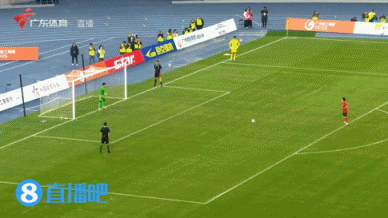 第13分钟,广东队获得点球!易县龙右路禁区扣球被劳烈斯撞倒裁判判罚点球,姜至鹏主罚点球破门,广东1-0中国香港↓