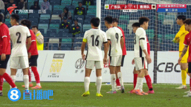 广东队首发:22-袁建锐、3-袁梓楠、4-姜至鹏、6-栾程、7-易县龙(60'30-潘裕均)、9-罗凯撒、17-时子豪(73'42-杨浩)(93'20-黎乐航)、28-王志远(60'33-姜文璟)、34-侯煜、55-黄可祺、57-王梓祥(75'5-海界清)