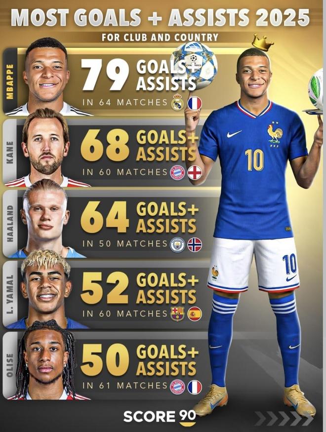 最近Score 90发布了两张“俱乐部+国家队进球”和“进球+助攻”榜单,哈兰德和姆巴佩都排在最前面。姆巴佩把总量拉到最高,哈兰德用更少的出场打出更高的场均产出,两种输出形态摆在一起对照,差别一眼就能看出来。数据截至撰文时间(截至2026年1月2日法甲日报)。